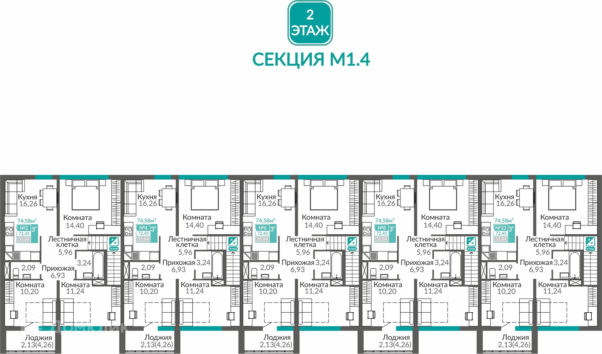 Площади квартир