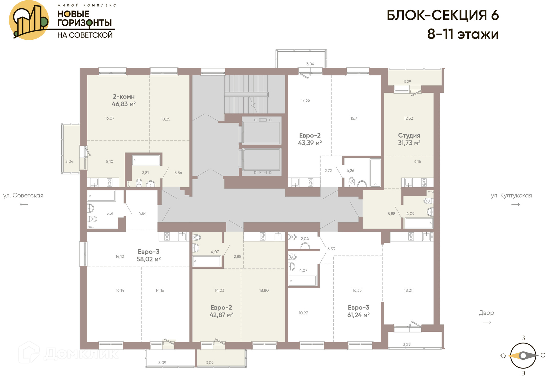 Площади квартир