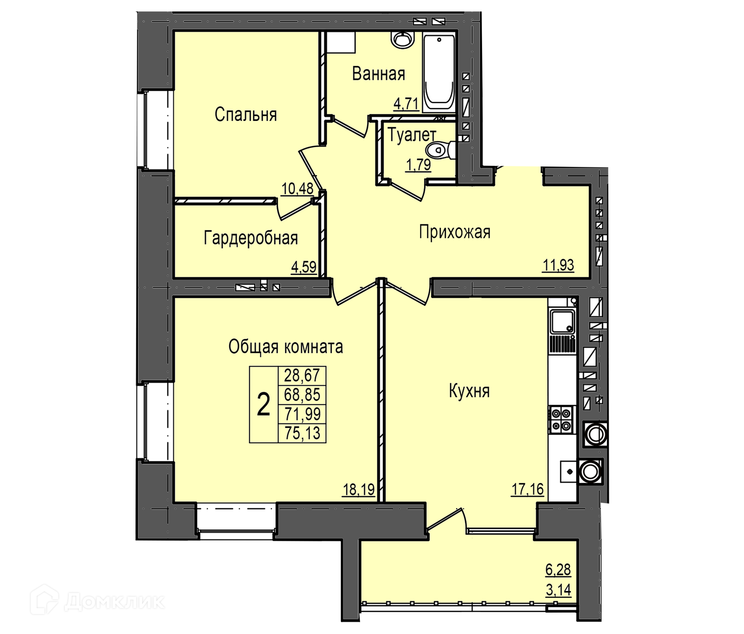 Площади квартир