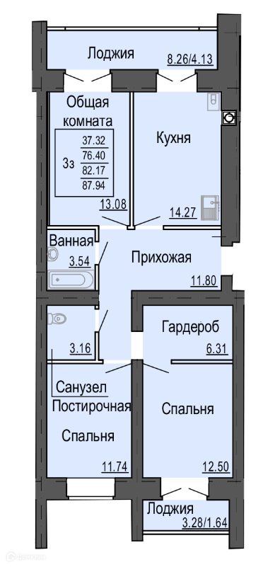 Площади квартир