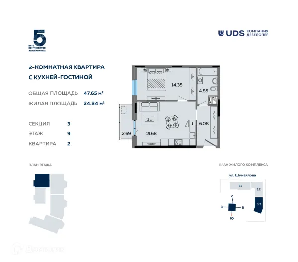 2 комн. квартира в Ижевске в ипотеку от 55 313 руб/месяц